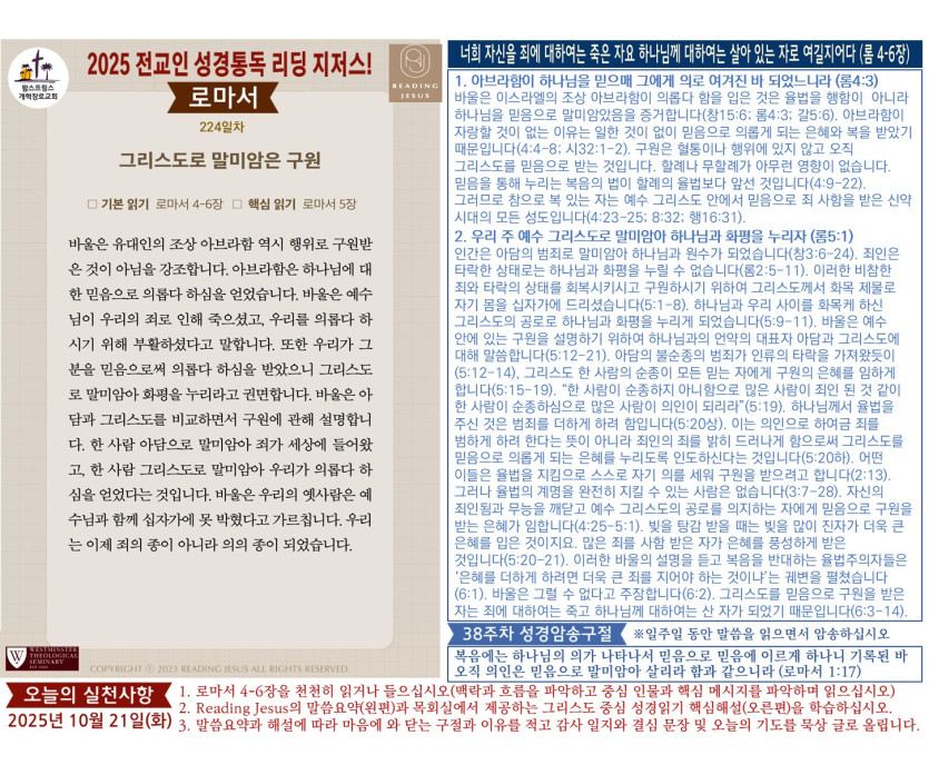 - 다음글(2025년 10월 20일) '리딩 지저스' 성경읽기 영상과 말씀요약/본문해설 (제223일차) 25.10.25