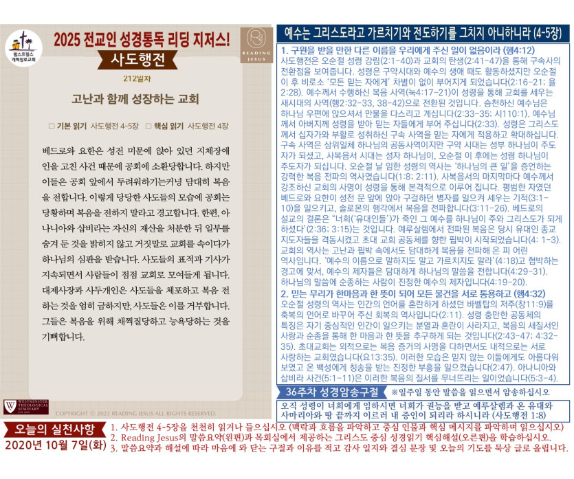 (2025년 10월 7일) '리딩 지저스' 성경읽기 영상과 말씀요약/본문해설 (제212일차)