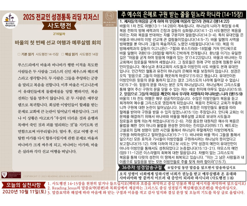 (2025년 10월 11일) '리딩 지저스' 성경읽기 영상과 말씀요약/본문해설 (제216일차)
