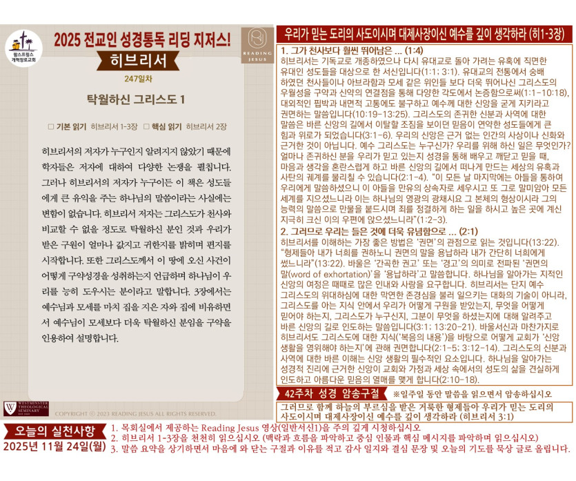 (2025년 11월 24일) '리딩 지저스' 성경읽기 영상과 말씀요약/본문해설 (제247일차)