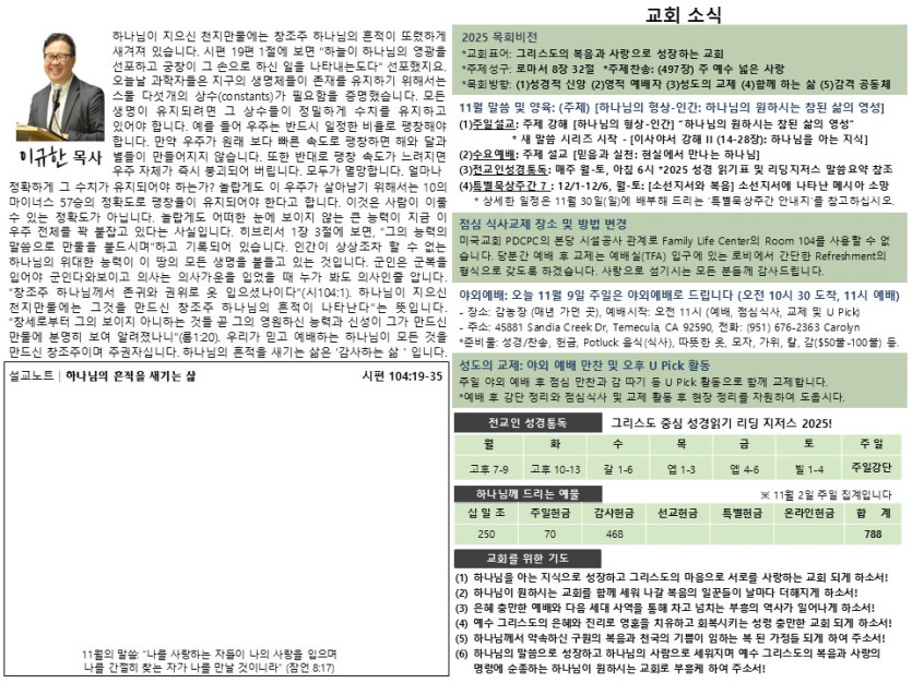 제3권 45호 페이지 정보 작성자 팜스프링스개혁장로교회 조회 23회 작성일 25-11-08 11:26 목록 본문 2025년 11월 9일 교회 주보입니다. 이전글제3권 46호 25.11.15 다음글제3권 44호 25.11.02