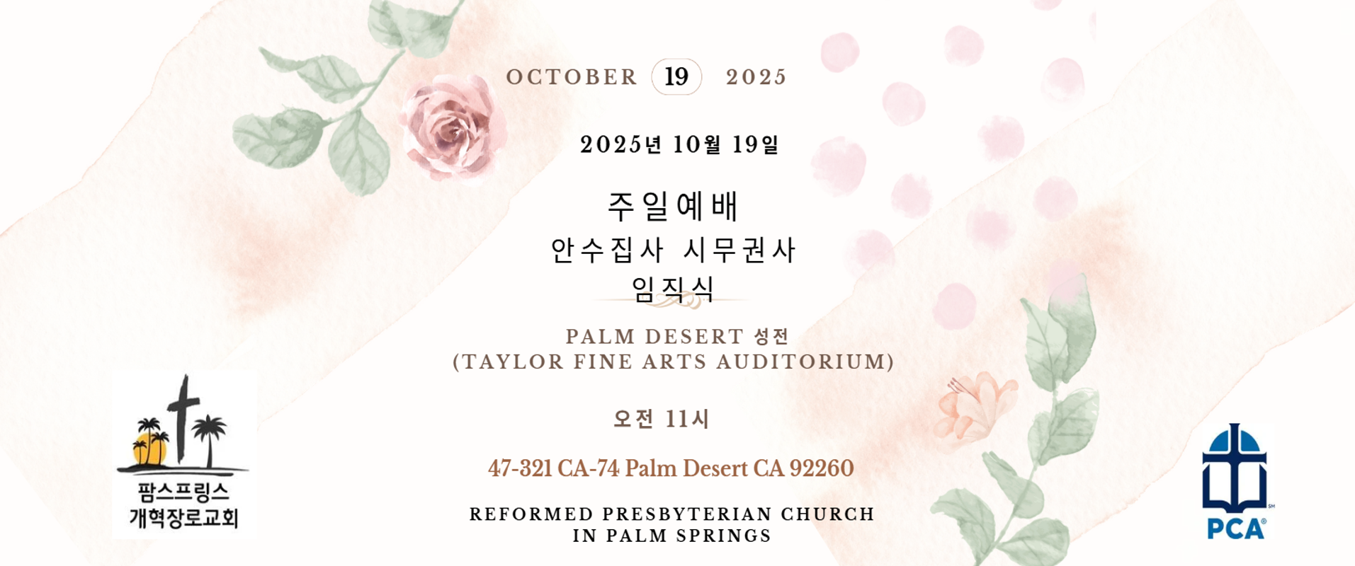 ※ 팜스프링스개혁장로교회는 PCA교단 서남OC노회에 속한 교회입니다.