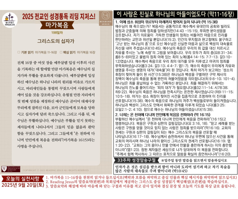 - 다음글(2025년 9월 19일) '리딩 지저스' 성경읽기 영상과 말씀요약/본문해설 (제197일차) 25.09.20