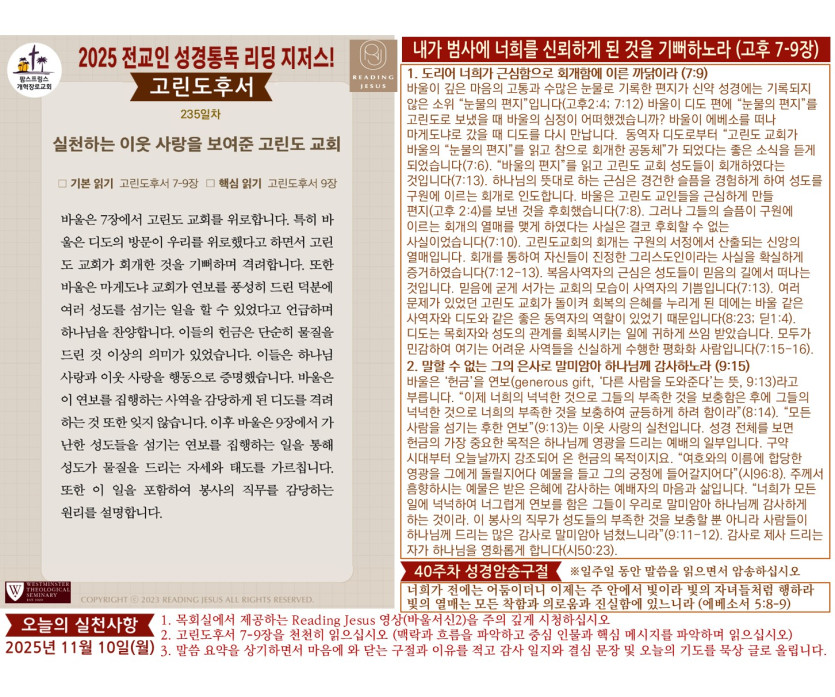 (2025년 11월 10일) '리딩 지저스' 성경읽기 영상과 말씀요약/본문해설 (제235일차)
