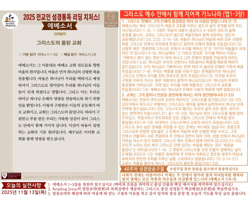 (2025년 11월 13일) '리딩 지저스' 성경읽기 영상과 말씀요약/본문해설 (제238일차)