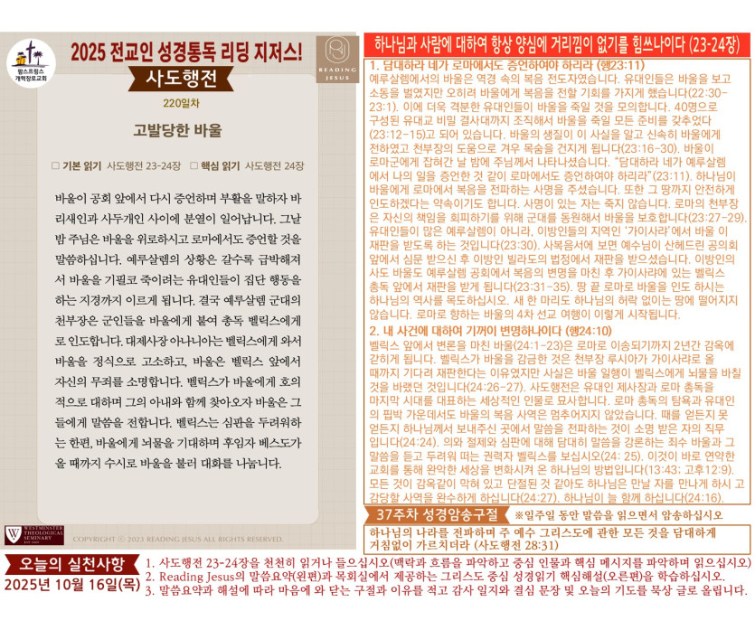 (2025년 10월 16일) '리딩 지저스' 성경읽기 영상과 말씀요약/본문해설 (제220일차)