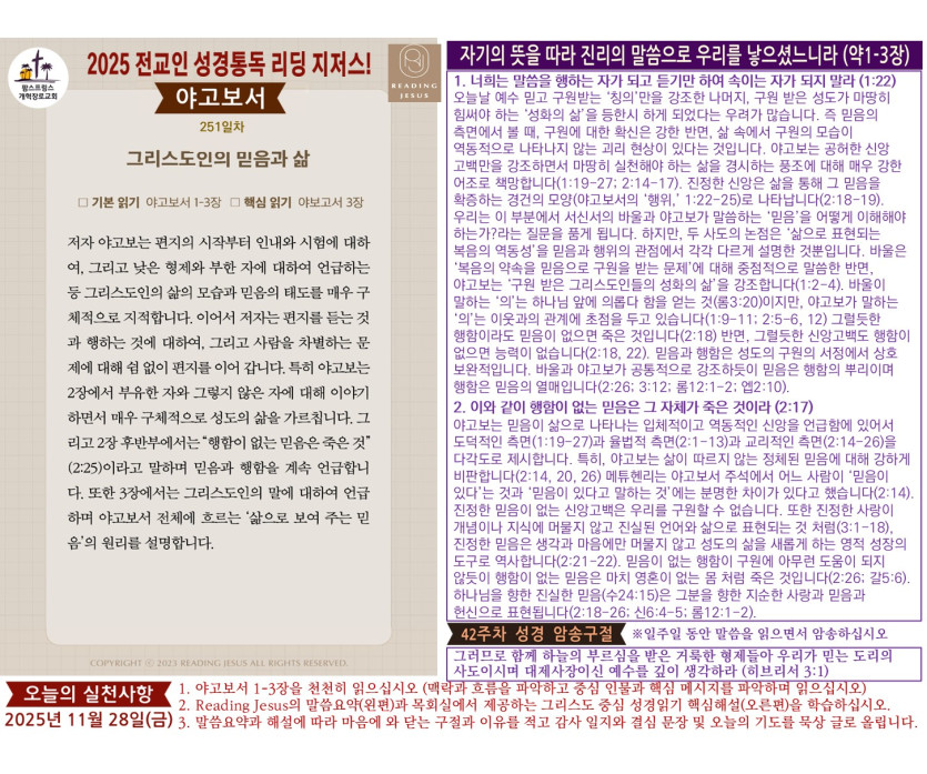 (2025년 11월 28일) '리딩 지저스' 성경읽기 영상과 말씀요약/본문해설 (제251일차)