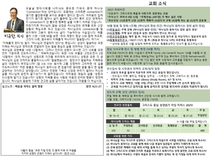 제3권 41호 페이지 정보 작성자 팜스프링스개혁장로교회 조회 75회 작성일 25-10-12 14:00 목록 본문 2025년 10월 12일 주일 교회 주보입니다. 이전글제3권 42호 25.10.18 다음글제3권 40호 25.10.04
